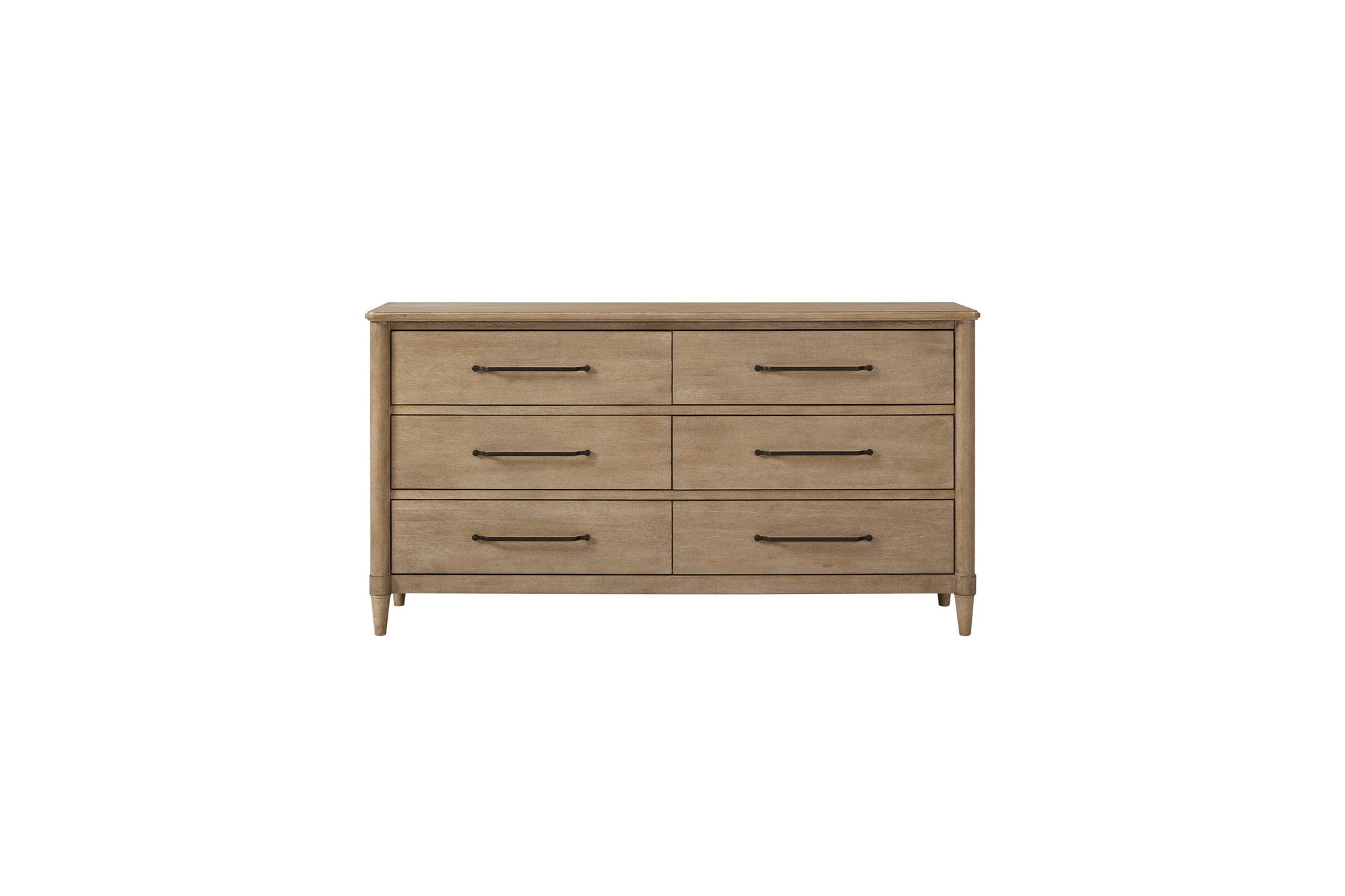 Introducing the Citrus Heights Casual 6 Drawer Dresser, a masterpiece of functionality and style crafted to enhance your living space. Embrace the perfect fusion of transitional elegance and casual charm with this meticulously designed dresser. Crafted with precision, this dresser boasts six spacious drawers, offering ample storage for your clothing, accessories, and personal belongings. Each drawer is equipped with smooth ball bearing guides, ensuring effortless opening and closing, while the felt-lined top drawer provides a luxurious touch, safeguarding delicate items with care. Adding to its allure, the bottom drawers are cedar-lined, imparting a subtle, refreshing fragrance while protecting your garments from pests and moisture. The dresser's construction features Mindi Veneer, renowned for its durability and natural beauty, while the wired brushed technique adds a touch of rustic sophistication. Finished in a captivating Sand finish, this dresser exudes warmth and tranquility, effortlessly complementing any décor scheme. Its transitional casual lifestyle design allows for seamless integration into a variety of interior styles, whether contemporary, traditional, or eclectic. Upgrade your bedroom ensemble with the Citrus Heights Casual 6 Drawer Dresser, where functionality meets finesse, and every detail is crafted with your utmost satisfaction in mind. Redefine your space with timeless elegance and practicality, courtesy of this exceptional furniture piece.