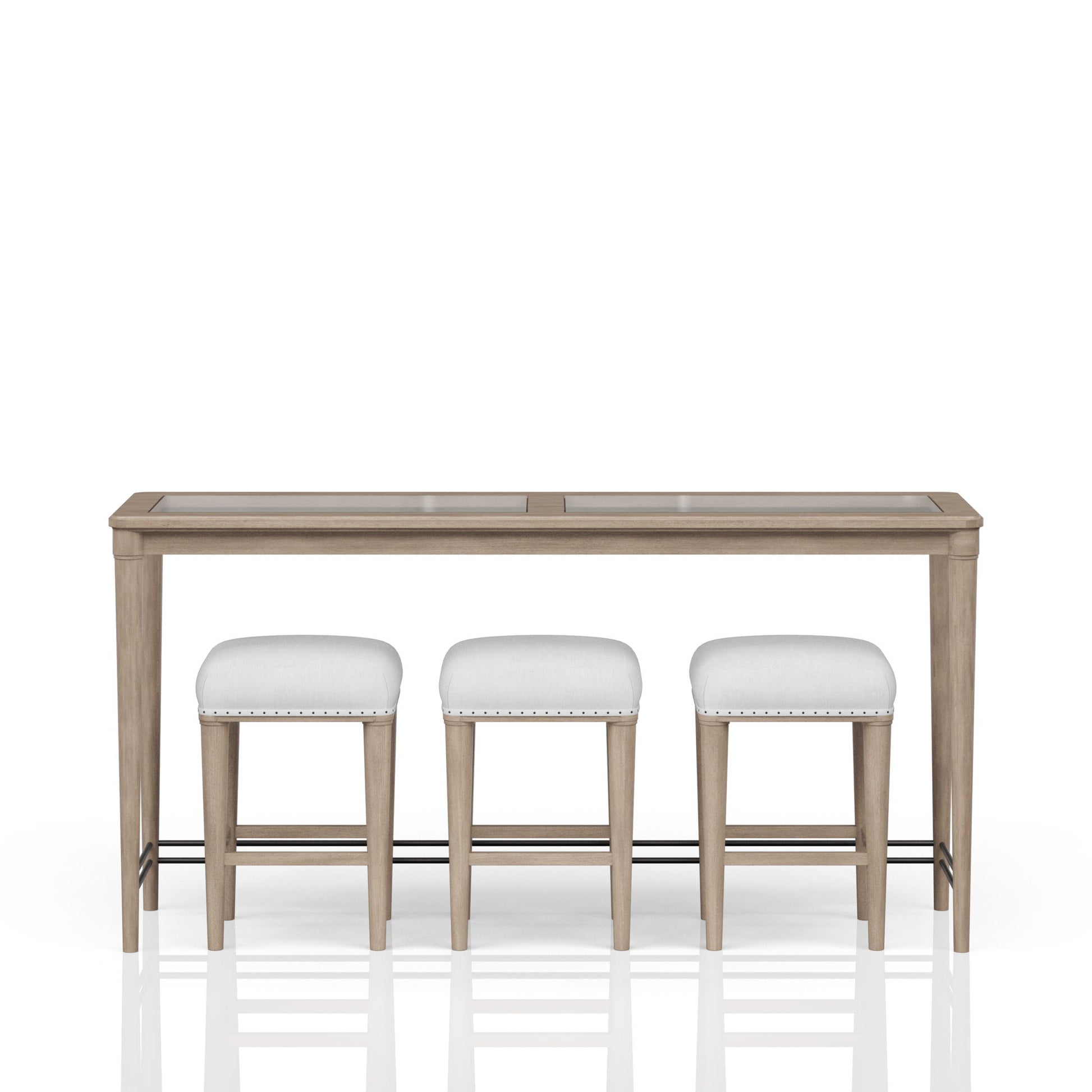 Citrus Heights - Frosted Glass Console Table With 3 Stools - Sand