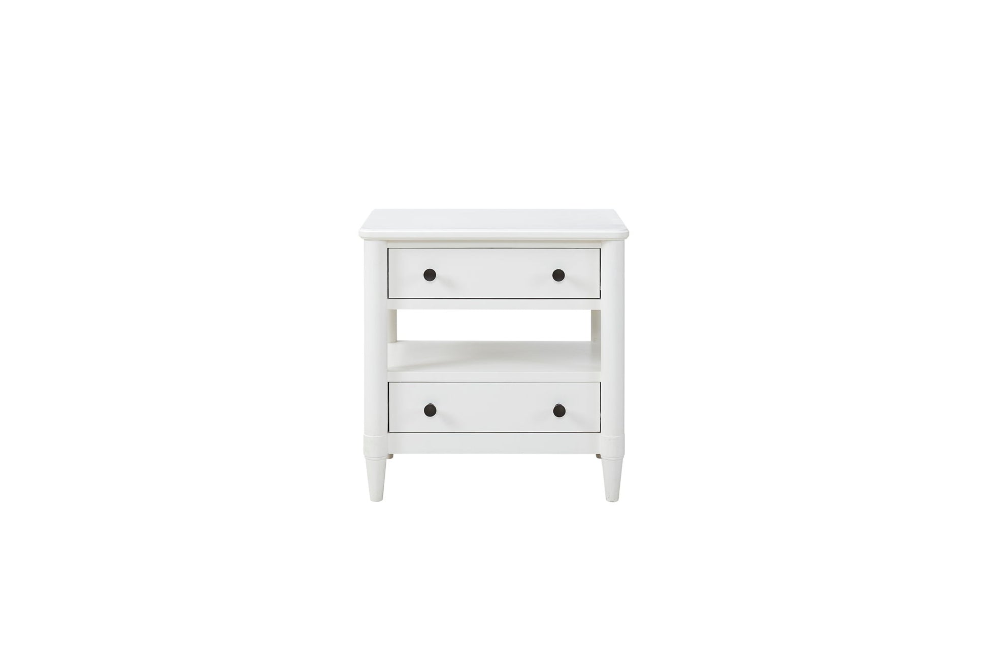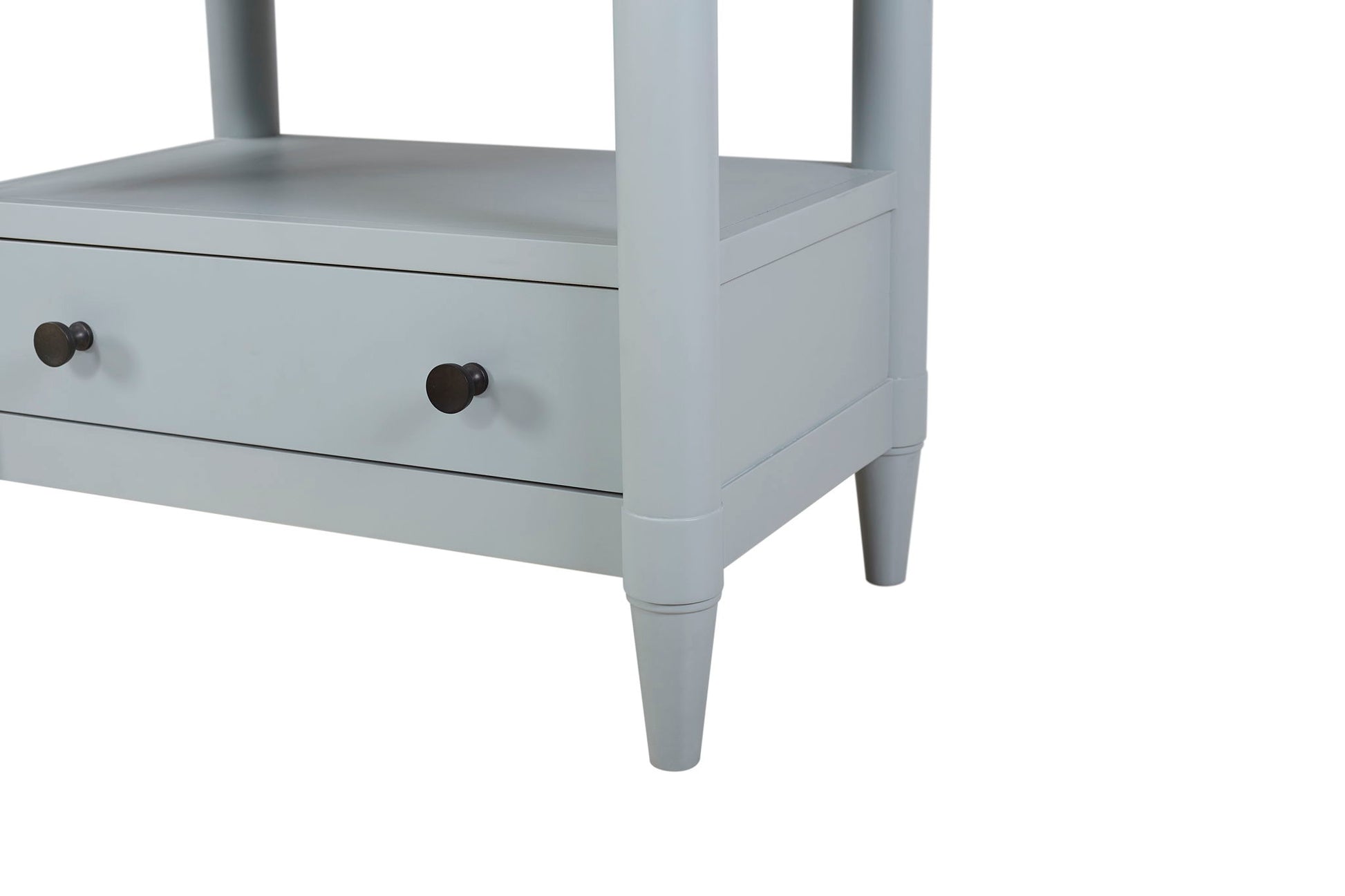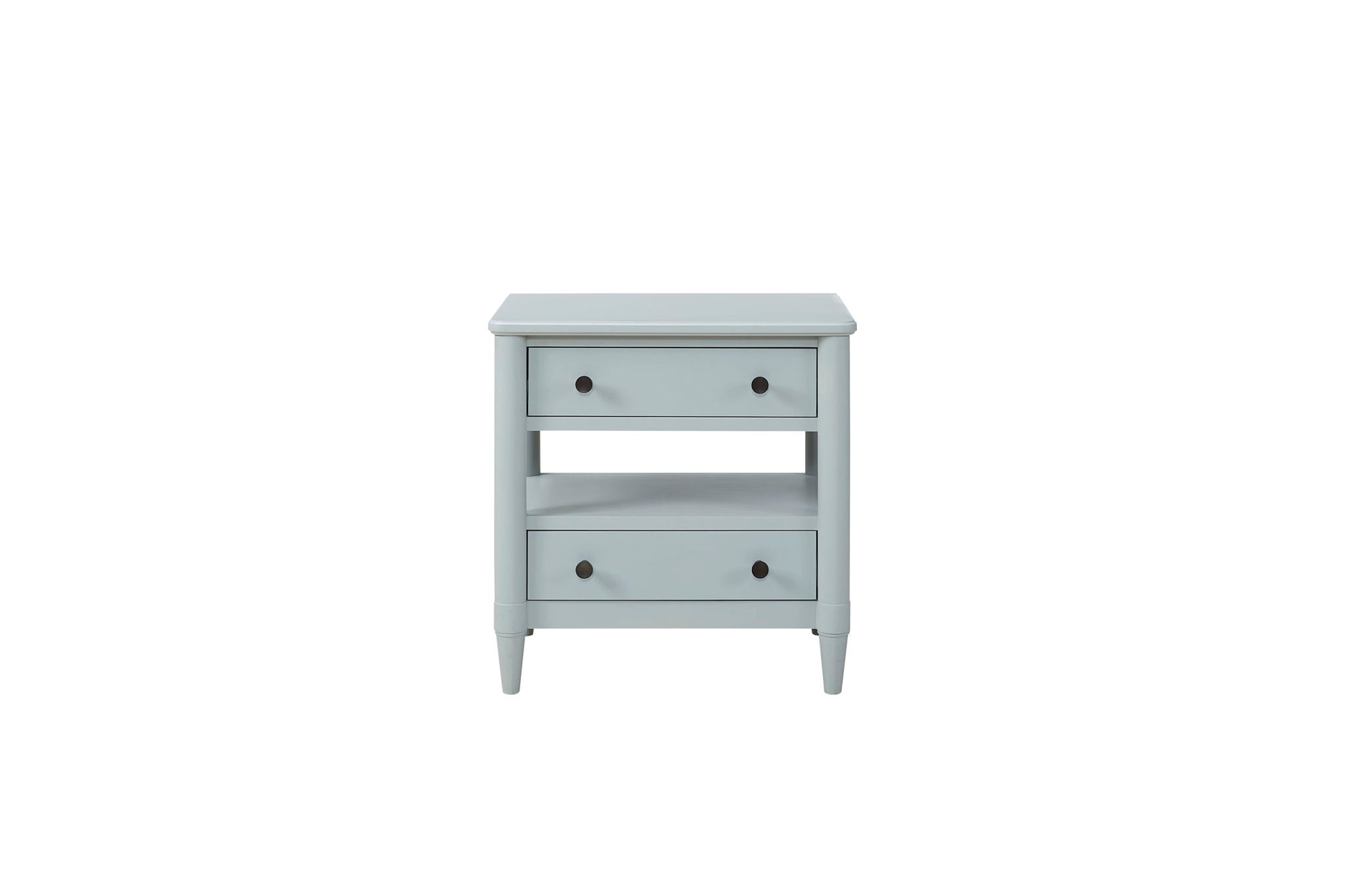 Introducing the Citrus Heights Open Nightstand, where functionality meets elegance in the heart of your bedroom sanctuary. Crafted with meticulous attention to detail, this nightstand boasts a sophisticated yet approachable transitional casual lifestyle design, seamlessly blending modern convenience with timeless charm. Constructed with high-quality Mindi veneer, each piece is carefully wired brushed to enhance its natural beauty, resulting in a stunning Painted Ocean finish that exudes coastal-inspired serenity. The textured surface invites touch, adding depth and character to your space. Equipped with two spacious drawers, this nightstand provides ample storage for all your bedside essentials. The felt-lined top drawer offers a plush resting place for delicate items, while the cedar-lined bottom drawer ensures a fresh and aromatic environment for your belongings. Enhanced with ball bearing guides, the drawers glide effortlessly, providing smooth and quiet operation. Whether you're reaching for a book before bed or stowing away personal items, the Citrus Heights Open Nightstand offers both practicality and style. Elevate your bedroom décor with this exquisite piece that seamlessly merges functionality with beauty, creating a sanctuary where tranquility reigns supreme.