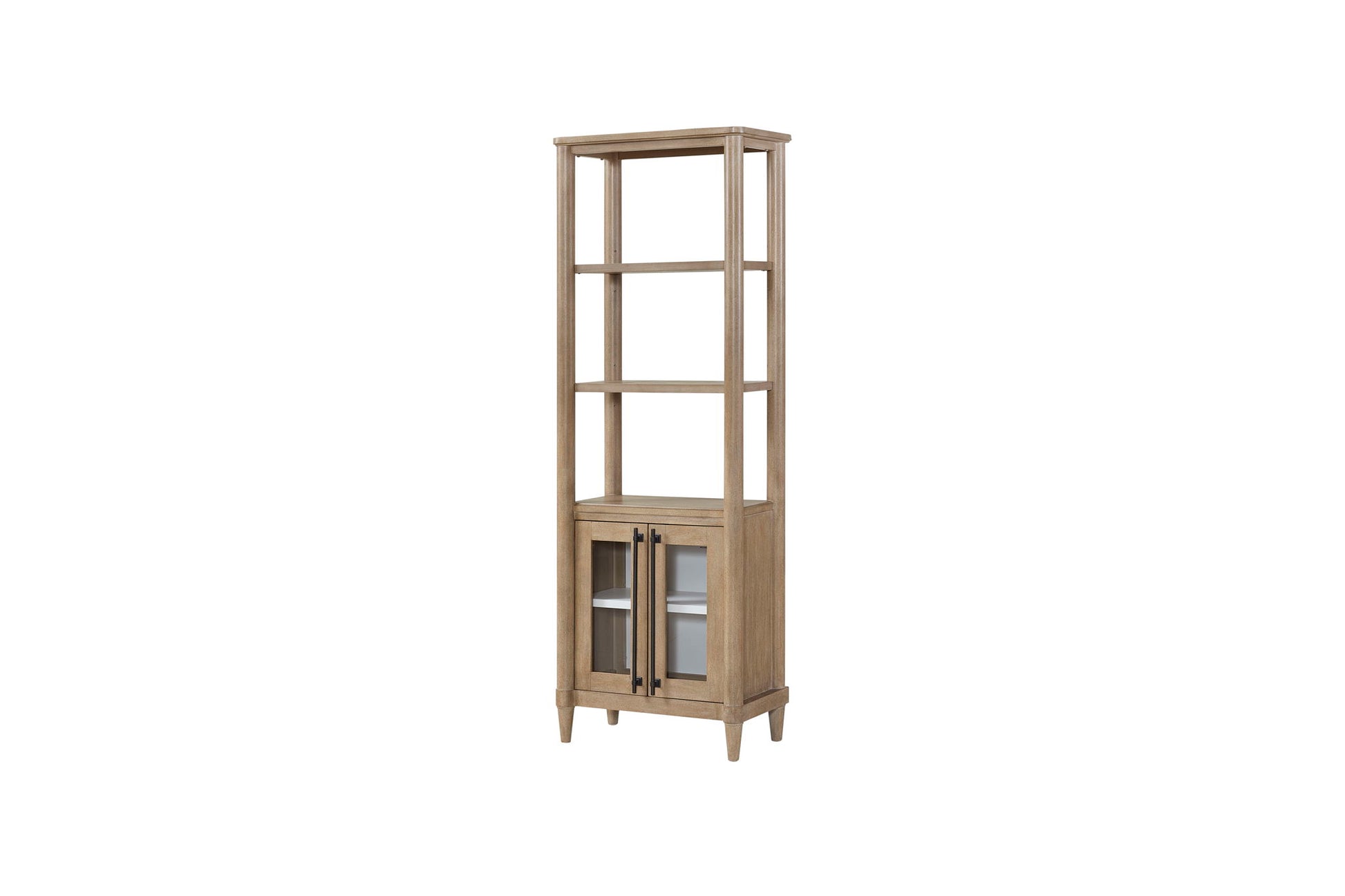 Introducing the Citrus Heights Pier Cabinet, a sophisticated fusion of functionality and style that enhances any living space with its understated elegance. Crafted with meticulous attention to detail, this pier cabinet boasts a sand-colored finish that adds warmth and charm to your home decor. Constructed with premium mindi veneers and expertly wire brushed for a textured, tactile appeal, this cabinet exudes a transitional Casual Elegance design, seamlessly blending contemporary trends with timeless sophistication. Equipped with two doors featuring European soft-close hinges and glass fronts, theCitrus Heights Pier Cabinet offers convenient storage while maintaining a sleek and refined aesthetic. Inside, a spacious storage shelf provides ample room for organizing various items, ensuring clutter is kept at bay. Above the glass doors, three open shelves offer a perfect showcase for displaying cherished mementos, family photos, or decorative accents, allowing you to personalize and elevate your space with cherished memories and stylish flair. Whether placed in a living room, dining area, or study, the Citrus Heights Pier Cabinet is a versatile and indispensable addition to your home furniture collection, offering both practical storage solutions and a touch of sophisticated charm. Elevate your interior decor with this exquisite piece, where functionality meets timeless elegance.