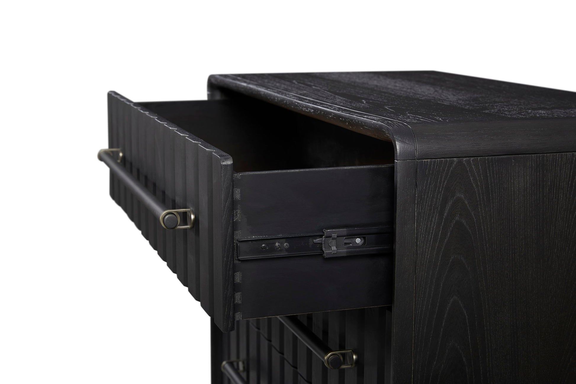 Introducing the Elure Bachelor's Chest in a refined Peppercorn finish, a perfect blend of functionality and style for your bedroom. This elegant piece features three spacious storage drawers, ensuring ample room for all your essentials. The top drawer is lined with soft felt, ideal for storing delicate items, while the bottom drawer boasts a cedar lining, providing a fresh scent and natural protection for your belongings. Crafted with exquisite Elm veneers, the Elure Bachelor's Chest is not only visually appealing but also built to last. The side-mounted ball bearing guides ensure smooth and effortless drawer operation, adding to the overall quality and convenience of this piece. Whether you're enhancing a modern or traditional décor, the sophisticated design and practical features of the Elure Bachelor's Chest make it a must-have addition to any home.