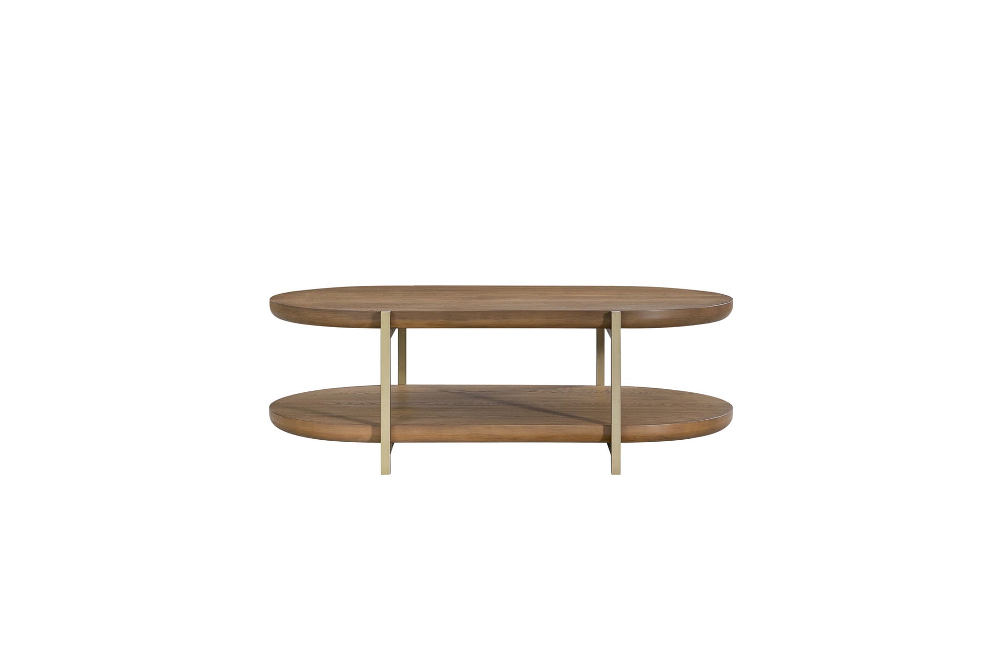 Introducing the Elure Bridges Cocktail Table, where sophistication meets functionality in every detail. Crafted with a rich Latte finish and sleek metal supports, this table blends seamlessly into any contemporary living space. Its defining feature lies in the gentle curved edges, which not only enhance its aesthetic appeal but also add a soft modern touch to your decor. The table is designed with practicality in mind, offering a spacious storage shelf beneath the main tabletop. This shelf provides ample room for displaying your favorite books, magazines, or decor items, keeping them within easy reach yet neatly organized. Whether you're enjoying a quiet evening at home or entertaining guests, the Elure Bridges Cocktail Table serves as a versatile centerpiece, combining style with functionality effortlessly. Elevate your living room with this exquisite piece that promises to complement your lifestyle and enhance your home's ambiance.