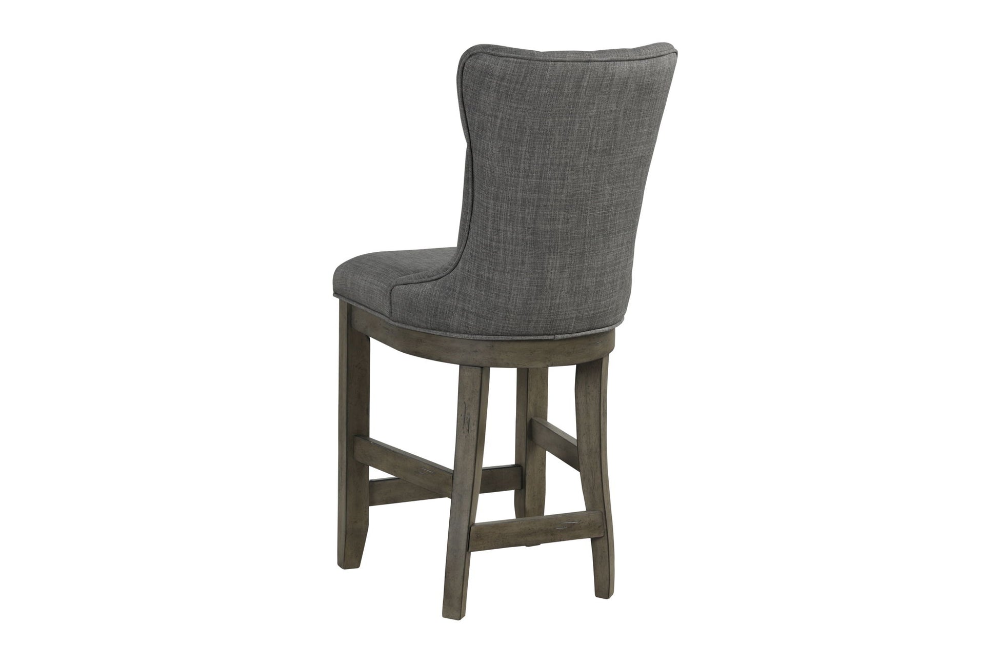 Casual elegance defines the Hartford dining collection. This beautiful collection is presented in a warm grayish-brown finish. It also features multiple table, chair, and stool options. Dress it up with fully upholstered seating in a modern gray fabric on each end of the table.