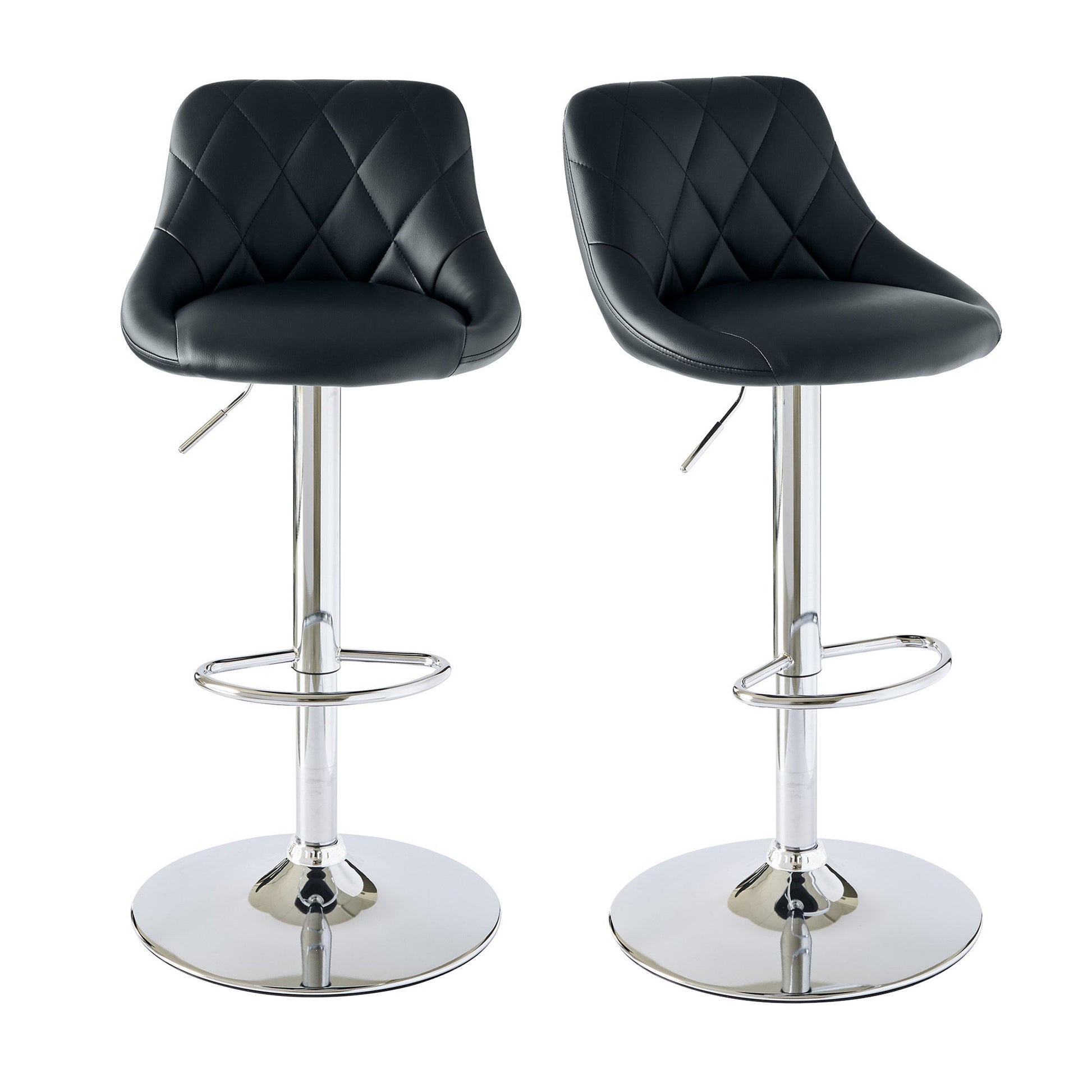 The Melissa Adjustable Swivel Bar Stool Set is the perfect addition to your home! This dynamic duo comes with two bar stools that are upholstered in a fashionable, faux leather fabric. The sleek, chrome base pairs beautifully with the fabric. The back cushion of the chair features diamond stitching creating extra flair for this already stunning set. These bar stools feature a swivel base, making sure you never miss a part of the conversation. Probably one of the best features about the bar stools is its adjustable height, making it easy to fit with your kitchen counter.