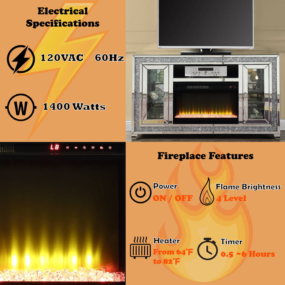 - Materials: Fireplace, Composite Wood, Mirror, Acrylic Diamond