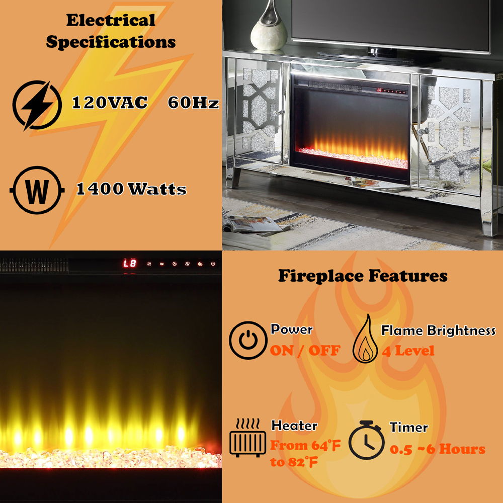 Noralie - 28" TV Stand With Fireplace - Mirrored & Faux Diamonds
