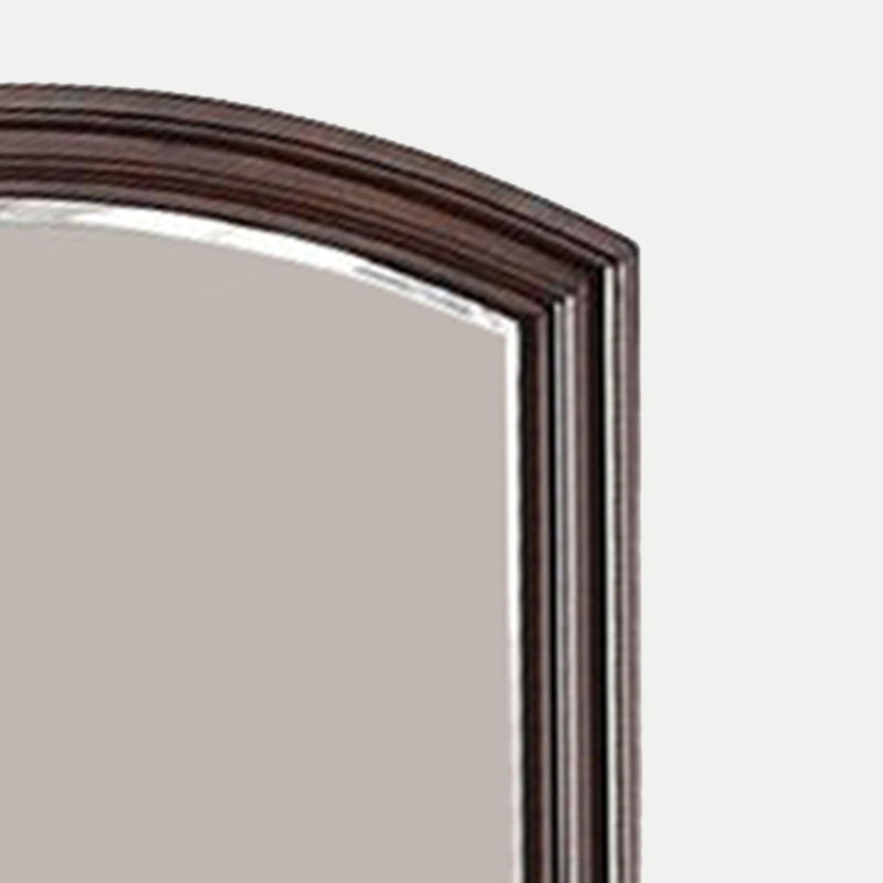 Introducing the Prescott Arch Wood Dresser Mirror in a stunning finish. This beautifully crafted mirror is the perfect addition to your bedroom, providing both functionality and style. Measuring 37.75'' in height and 44.25'' in width, it is the ideal size for a dresser mounted mirror. The smooth arch design adds an elegant touch to any room, while the finish creates a warm and inviting atmosphere. The mirror itself is made of high-quality glass, providing a crystal-clear reflection for all your grooming needs. Crafted from durable wood, this dresser mirror is built to last and withstand the test of time. The 1.5'' depth of the mirror ensures that it stays securely mounted on your dresser, while also allowing for easy installation. Whether you're getting ready for a night out or simply want to add a touch of sophistication to your bedroom, the Prescott Arch Wood Dresser Mirror is the perfect choice. Its timeless design and high-quality construction make it a must-have for any home.