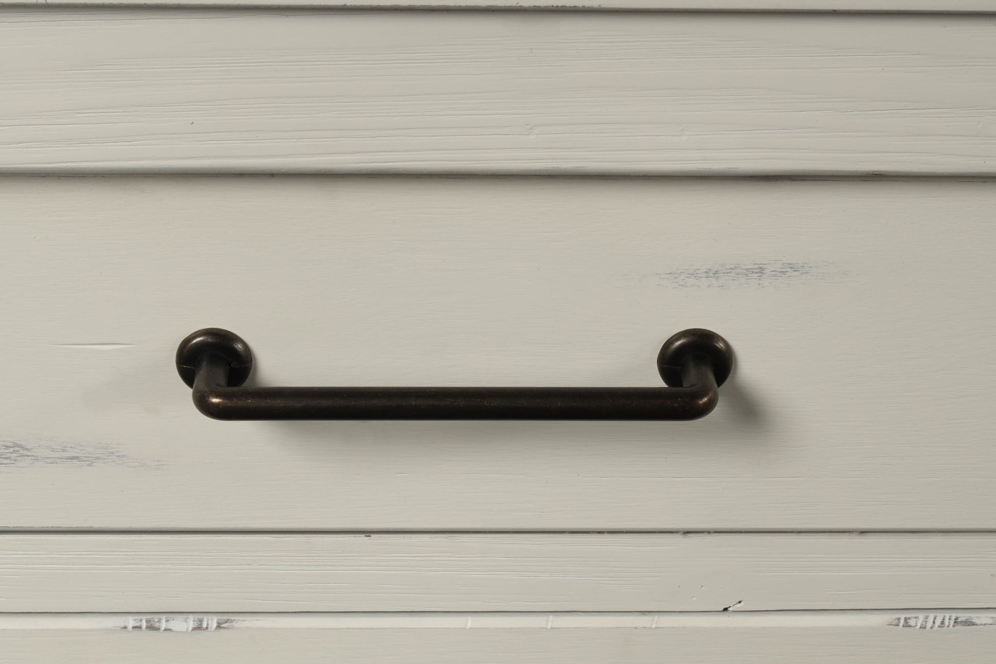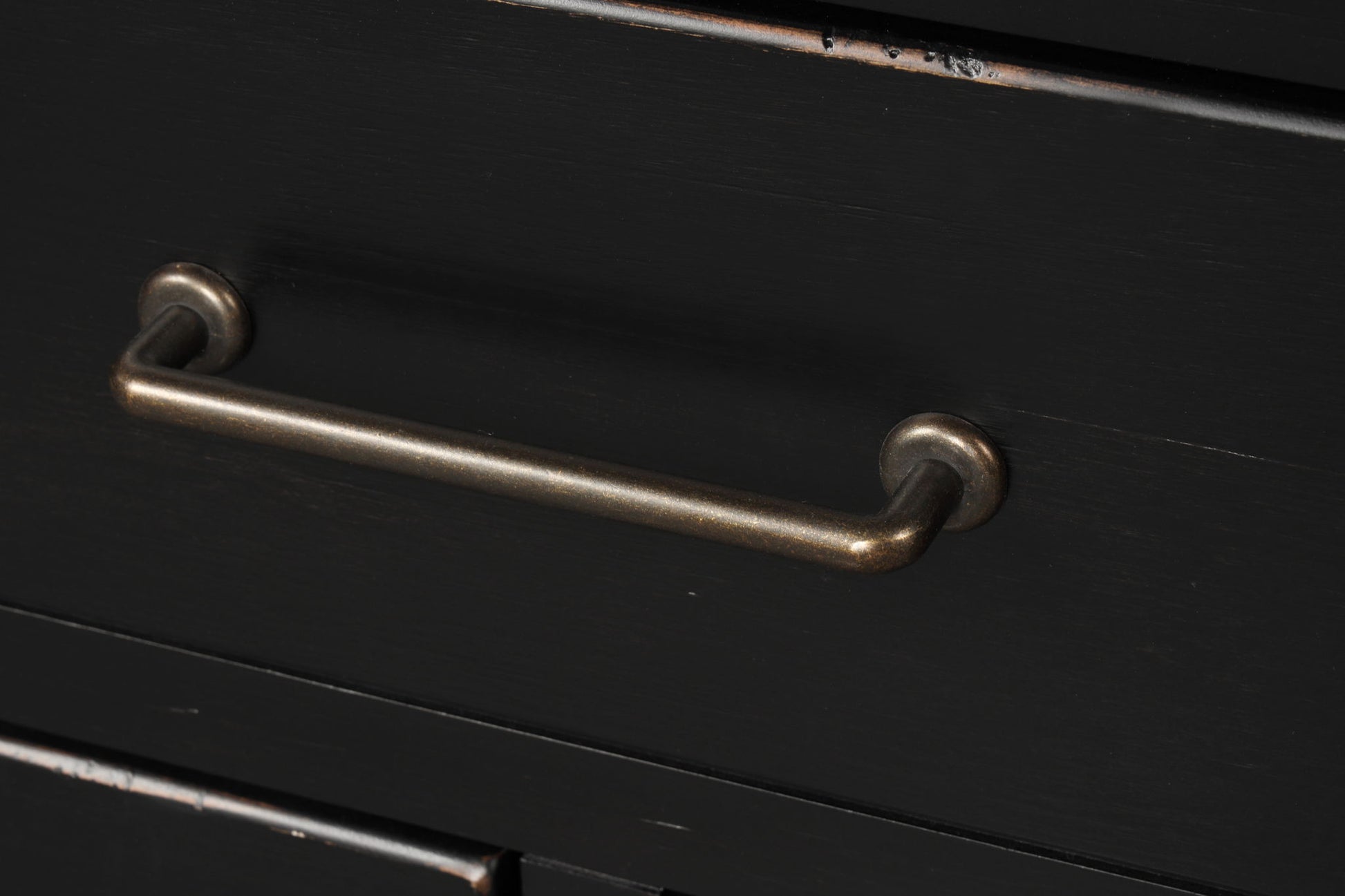 Introducing the Bernards Spruce Creek 6 Drawer Chest Furniture, a stunning addition to any home. This chest measures 18"D x 38"W x 52.25"H, providing ample space to store all of your clothing and accessories. The six spacious drawers are designed with French dovetail fronts and English dovetail backs, ensuring that they are functional and built to last. Crafted using the time-honored tradition of mortise and tenon joinery, this chest is built to withstand the test of time. The weathered, distressed finish gives this chest a touch of country charm, while the industrial accents add a modern twist. The result is a unique and stylish piece of furniture that will complement any home decor. Whether you're looking for a functional storage solution or a statement piece of furniture, the Bernards Spruce Creek 6 Drawer Chest Furniture is sure to impress. With its sturdy construction and timeless design, this chest is the perfect addition to any bedroom or living space.
