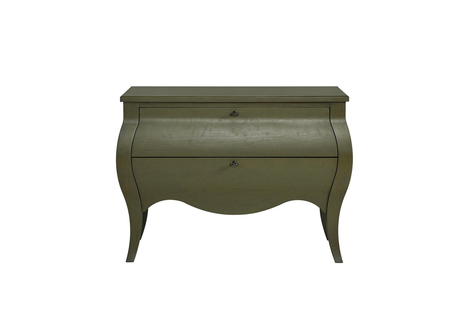 The Tarrington Bombe Chest in a refreshing Pistachio finish is a perfect balance of elegance and charm, crafted with Hickory veneers that highlight its fine craftsmanship. Its graceful bombe silhouette, paired with gently curved legs, adds a touch of timeless sophistication to any room. Featuring two spacious drawers with smooth-glide functionality, this chest provides practical storage while maintaining its stylish design. The soft green Pistachio tone brings a fresh, unique character that blends seamlessly with both classic and modern interiors. Ideal as an accent chest in a bedroom, hallway, or living area, the Tarrington Bombe Chest makes a statement with its combination of beauty, versatility, and functionality.