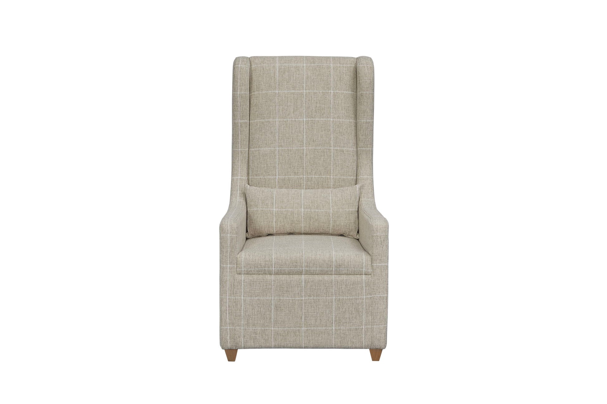 The Tarrington Host Chair brings refined comfort and timeless design to your dining space. Wrapped in a durable polyester fabric with a subtle grid pattern, this chair offers both elegance and long-lasting performance. Its padded exterior ensures extra durability while adding a layer of softness to its structured silhouette. The high back and gently winged sides provide a stately presence, while the Hickory wood feet ground the design in natural warmth. An additional accent pillow enhances lumbar support, making it ideal for long dinners and gatherings.