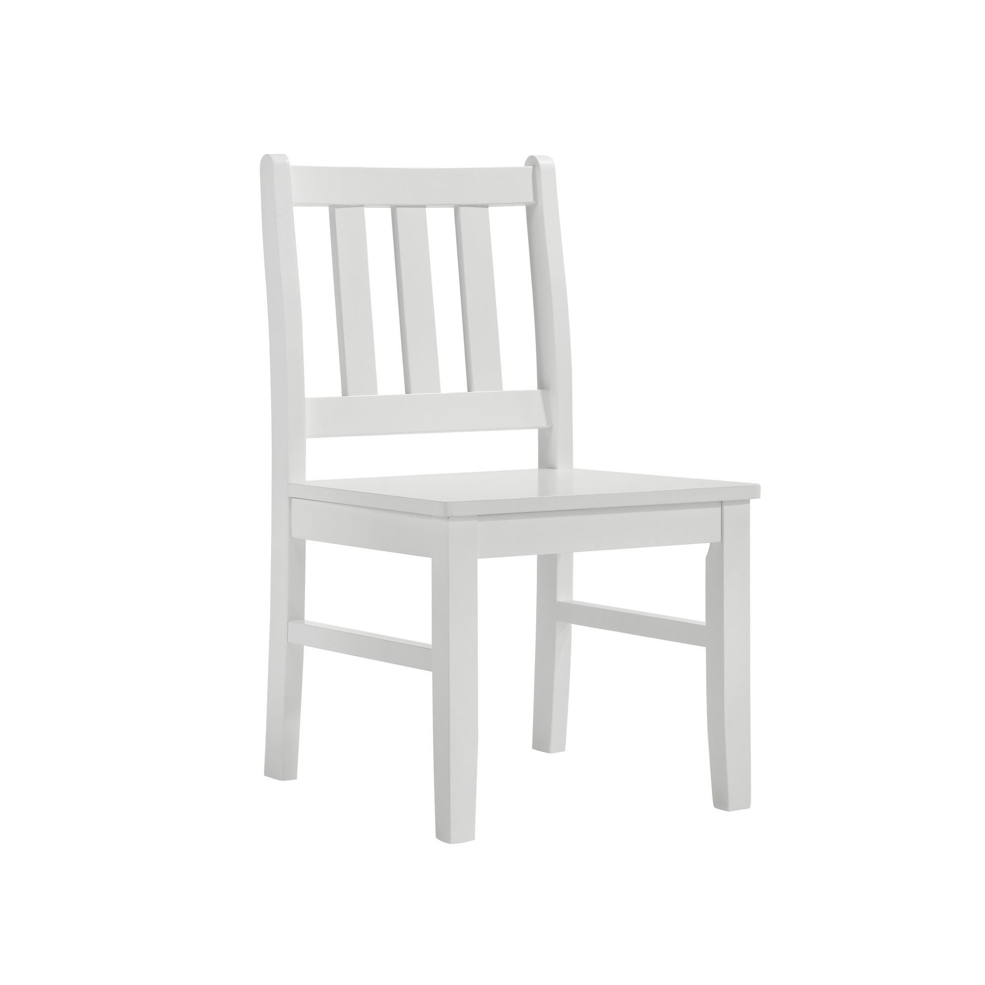 Introducing the Travis Youth Dining Set, designed with youngsters in mind. This charming set features a youth-height table and chairs, finished in a sleek white that adds a touch of elegance to any space. The cut corner table and slat back chairs provide stylish details, while the stretchers on each chair ensure stability and durability. Its compact size makes it perfect for smaller spaces, and the entire set conveniently ships in one box for easy assembly. The Travis set is the perfect blend of functionality and style for your child's dining or play area.