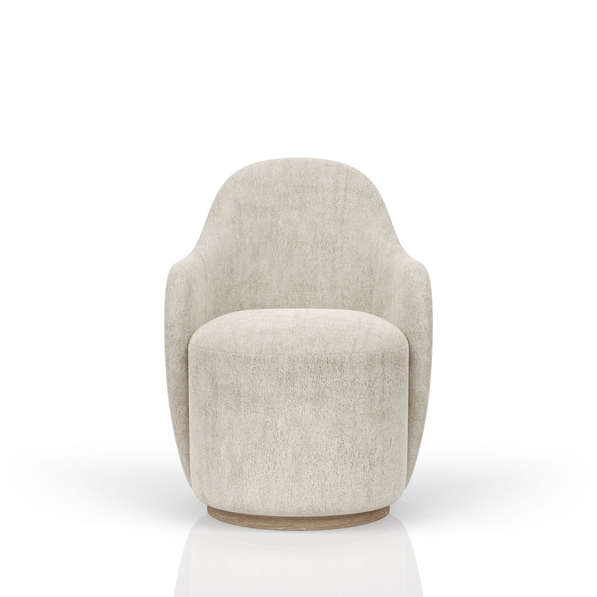 The Trilogy Barrel Chair in Cocoa/Ivory combines sophisticated design with ultimate comfort. Upholstered in soft polyester ivory fabric, this swivel chair exudes an elegant, casual charm that enhances any living space. Its creative host chair design features a smooth swivel mechanism, making it perfect for hosting guests or adding a touch of luxury to your home. The chair is built with web seating for added comfort, ensuring a relaxing experience whether you're sitting for a meal or enjoying a conversation. With its inviting colors and thoughtful design, the Trilogy Barrel Chair is a stylish and functional addition to your home.