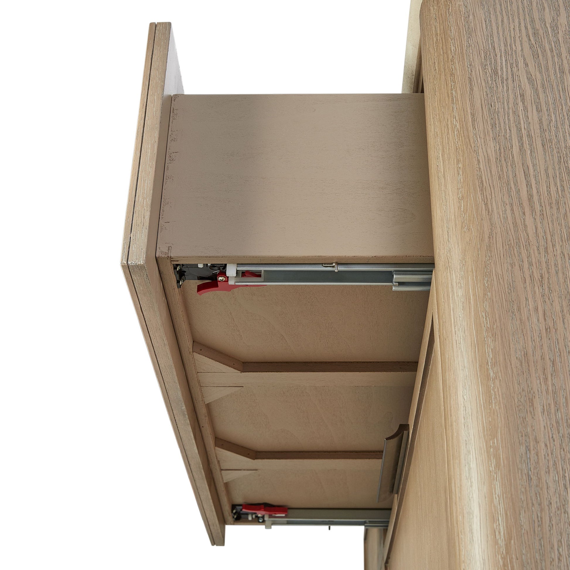 Trilogy Dresser with Oak Veneer Drawer Fronts The Trilogy Dresser offers a perfect balance of natural elegance and practical storage. Featuring six spacious drawers, this dresser is designed to keep your wardrobe organized and your space serene. The oak veneer drawer fronts bring a warm, organic texture to the sleek, contemporary profile, finished in a rich, versatile tone. Thoughtfully designed with soft-touch, self-closing drawer guides, the dresser includes felt-lined top drawers for delicate accessories and cedar-lined bottom drawers to preserve clothing freshness. Sophisticated and functional, the Trilogy Dresser is a refined addition to any bedroom setting.