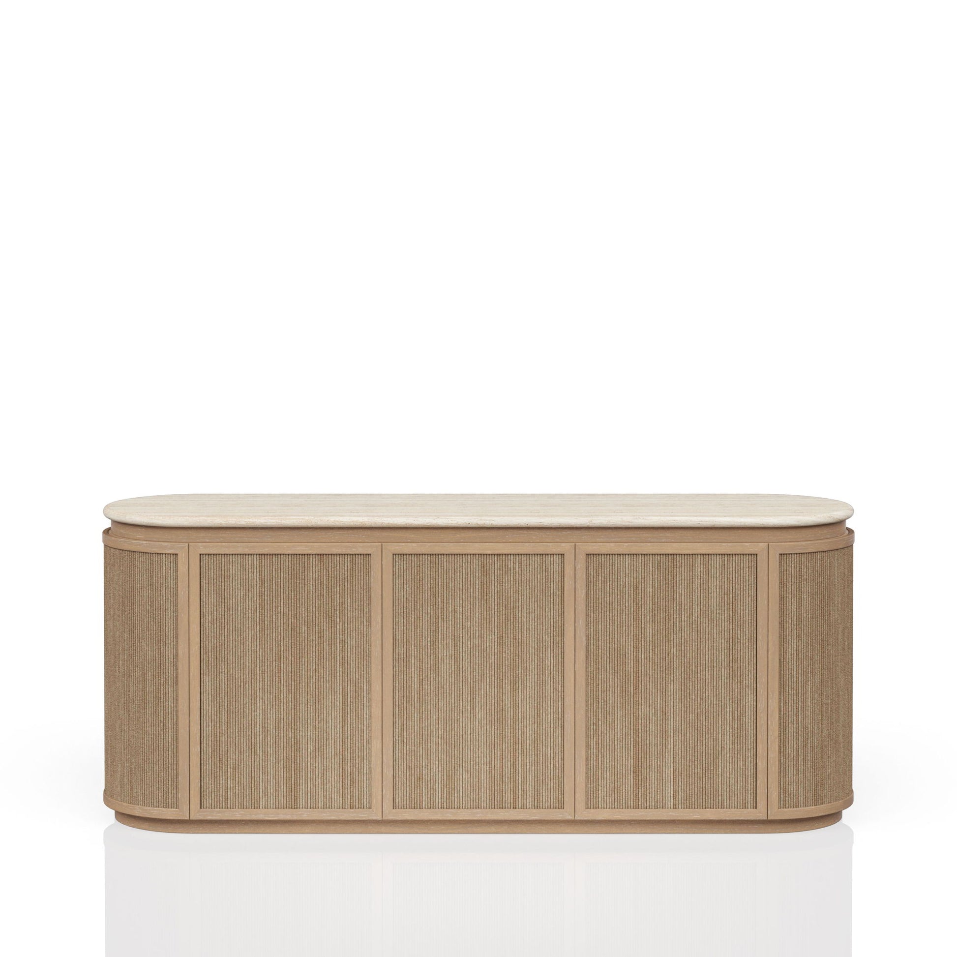 The Trilogy Stone & Rope Server is a masterful blend of natural elegance and refined design. Its Toffee Finish adds warmth and sophistication, perfectly complementing the Travertine Stone Top, which provides a luxurious and durable surface. The cabinet doors feature intricately crafted rope fronts, lending a unique textural charm to the piece. With European Soft Close Hinges, the server ensures smooth and quiet functionality, enhancing its practicality. Ideal for those who appreciate an Elegant Casual Design, this server seamlessly integrates style and utility, making it a standout addition to any dining or living space.