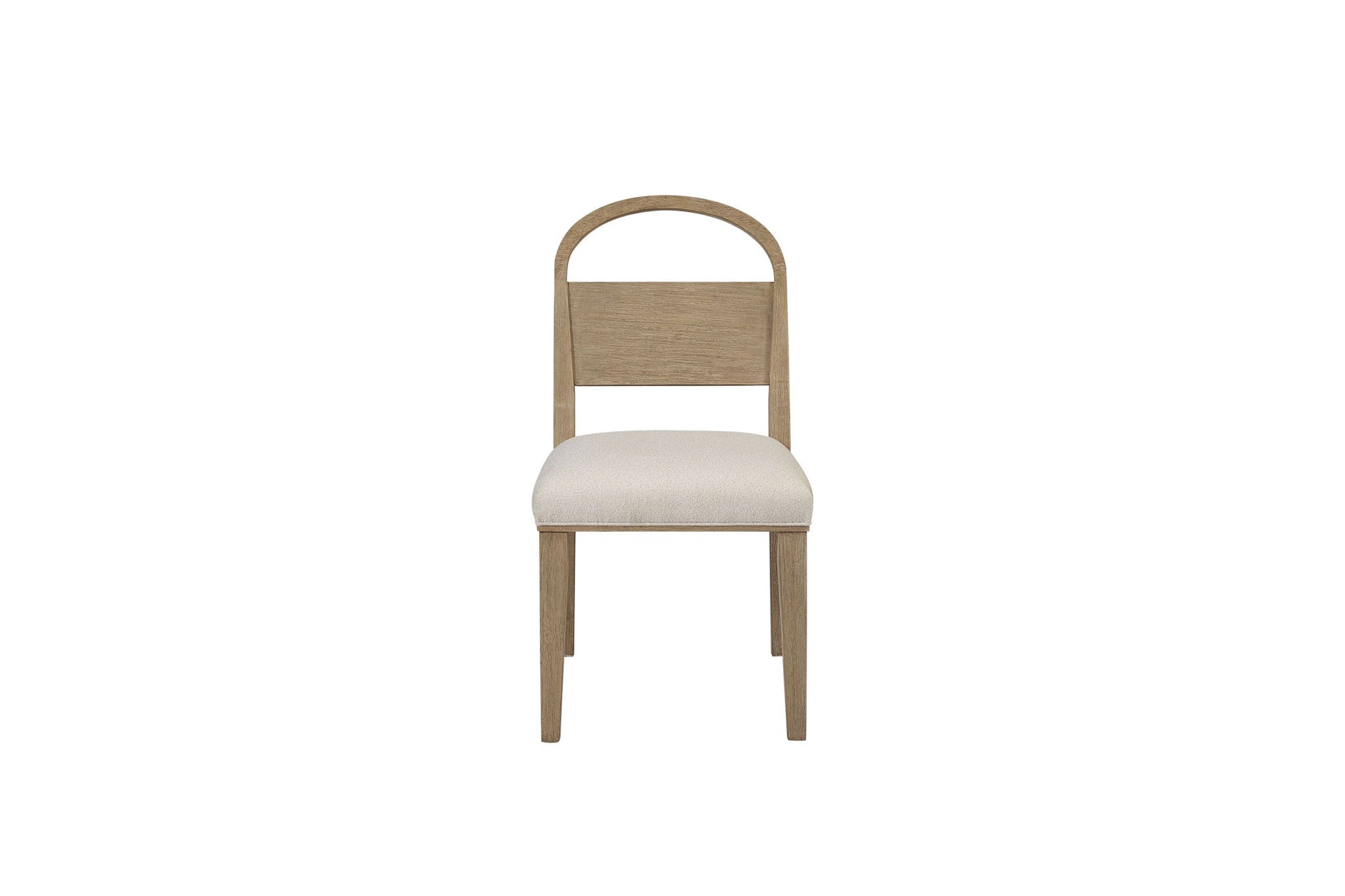 The Trilogy Wood Arched Back Chair combines timeless design with luxurious comfort. Featuring a beautifully crafted wood frame in a rich finish, this chair is accented by an elegant arched back that enhances its sophisticated silhouette. The upholstered seat is crafted in soft White Sand polyester fabric, providing both style and comfort. The web seating construction ensures added support, making this chair perfect for long dinners or relaxed gatherings. With its Elegant Casual Design, the Trilogy Wood Arched Back Chair is a versatile addition to any dining space.