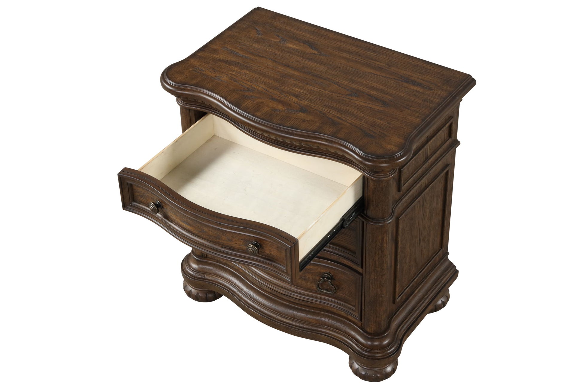 Tuscany - 3 Drawer Nightstand Wooden Top With USB - Warm Mahogany